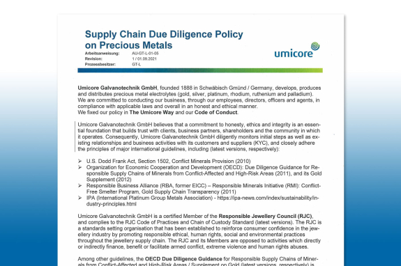 Der Umicore Way ist nicht nur für Mitarbeiterinnen und Mitarbeiter von Umicore bestimmt, sondern deckt auch unsere Beziehungen zu all unseren Partnern ab. Durch die Anwendung des Umicore Way verbinden wir wirtschaftlichen Erfolg mit gesellschaftlicher Verantwortung und dem Schutz der Umwelt.